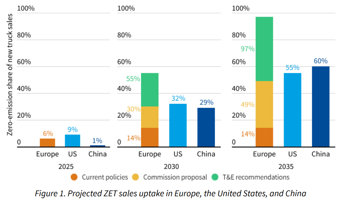 Secondo lo studio, il costo totale di proprietà (TCO) dei camion elettrici a batteria e a celle a combustibile scenderà al di sotto dei camion diesel entro la fine di questo decennio, e la domanda europea di quelli ZET aumenterà.