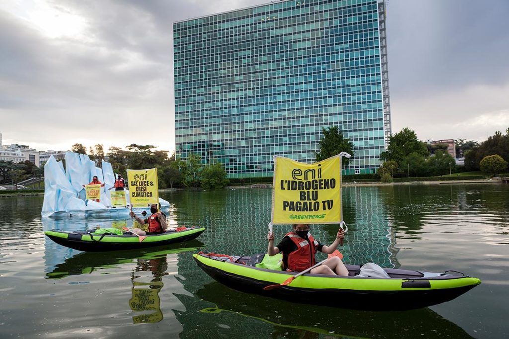 Un’azione che segue quella di ieri, quando nel laghetto antistante la sede del colosso petrolifero italiano è stata portata, sempre da Greenpeace, la riproduzione galleggiante di un iceberg che si scioglie, mentre sempre oggi per gli stessi motivi dalle 9 alle 13, in Piazza della Stazione Enrico Fermi si sta svolgendo un presidio organizzato da Fridays for Future, Extinction Rebellion Italia, Rise UP 4 for Climate Justice e NOalCCS – Il futuro non si sTocca.