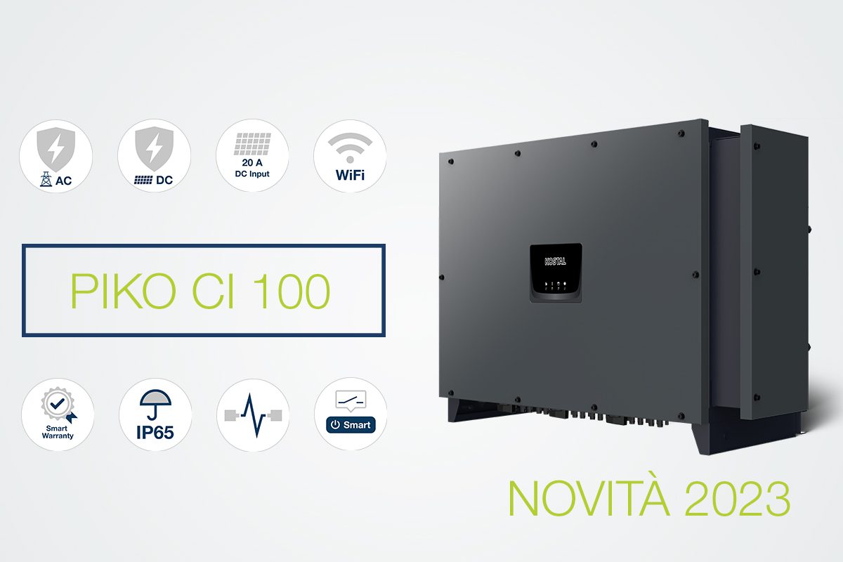 C’è poi l’inverter di progetto PIKO CI 100 per impianti su grandi superfici, in particolare tetti commerciali e a terra: ha un grado di efficienza massimo oltre il 98% e perdite di conversione minime. Si può abbinare all’energy manager KOSTAL Smart Energy Meter, all’inverter per accumulo PLENTICORE BI e a un sistema di accumulo ad alta tensione.
