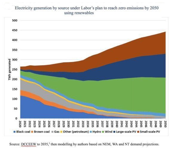 Nel grafico lo scenario australiano verso la neutralità climatica al 2050 basato sulle rinnovabili.