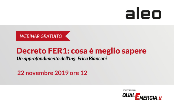 Lo scorso 22 novembre, Aleo ha organizzato in collaborazione con QualEnergia.it un webinar di approfondimento sul Decreto Fer1, con particolare riferimento a quanto concerne gli impianti fotovoltaici.