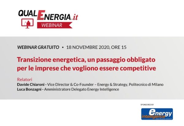 È questo il tema del webinar, svoltosi il 18 novembre, organizzato da Energy Intelligence con QualEnergia.it dal titolo “Transizione energetica, un passaggio obbligato per le imprese che vogliono essere competitive”.