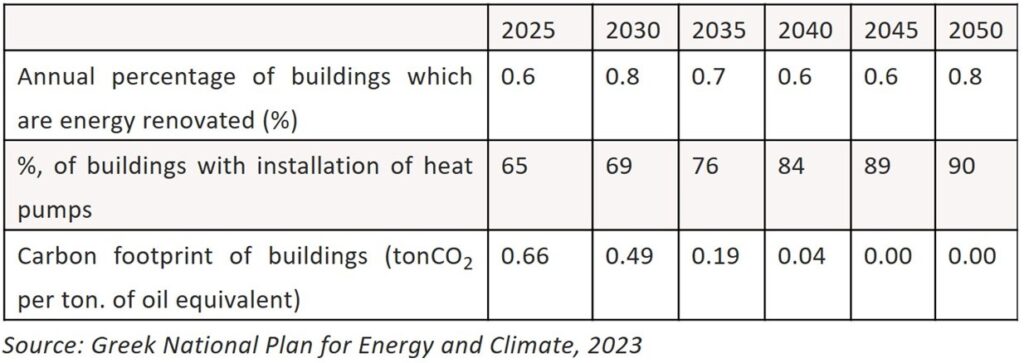 Gli obiettivi e le tappe fondamentali per la transizione energetica degli edifici alberghieri greci, fino al 2050, sono indicati nella tabella: